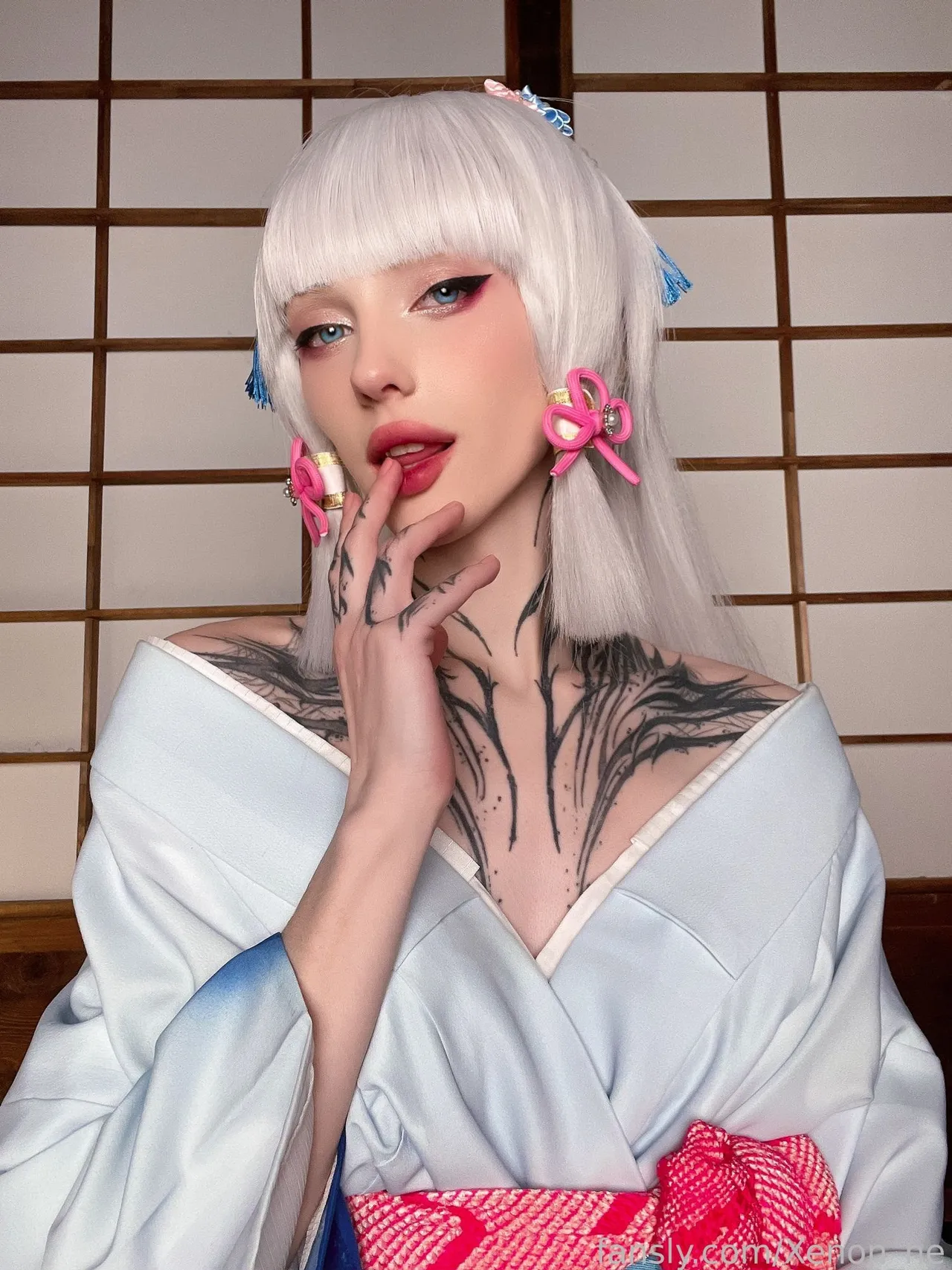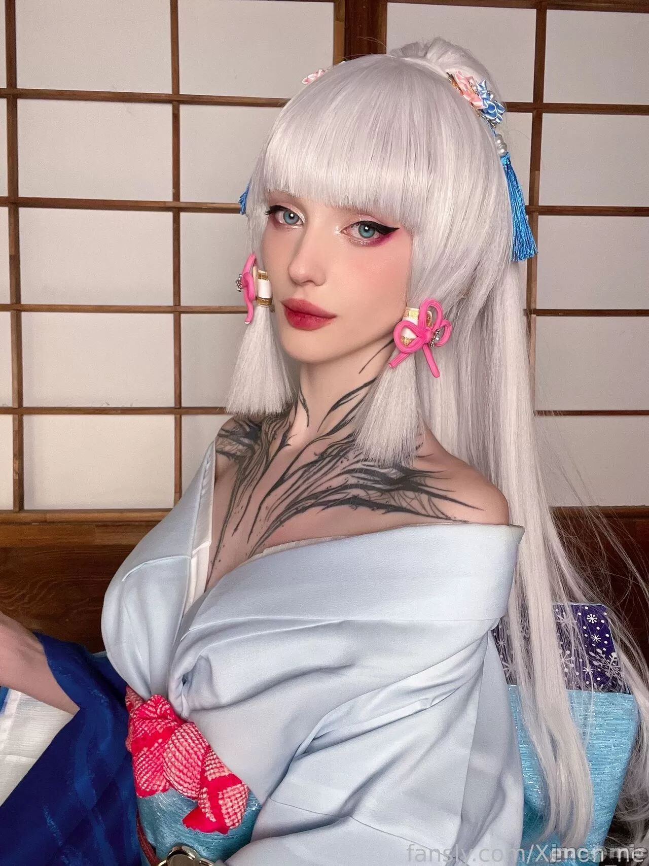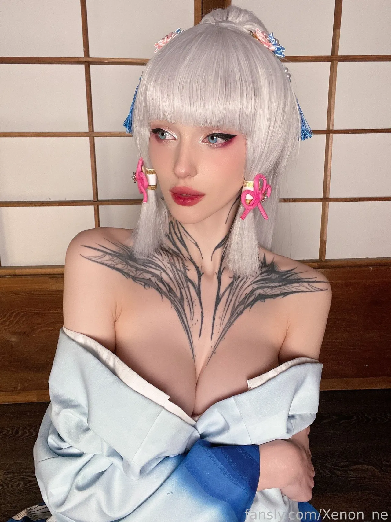 Tags: ayaka kamisato, Genshin Impact, hentai cosplay, Kimono, large tattoo, Makeup, painted nails, very long hair