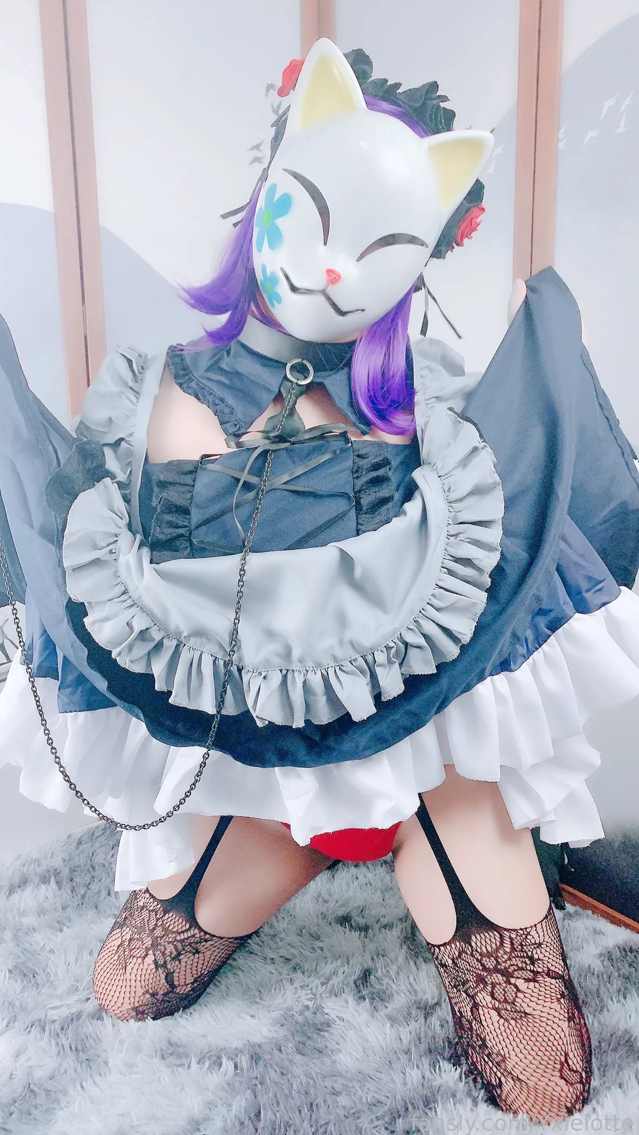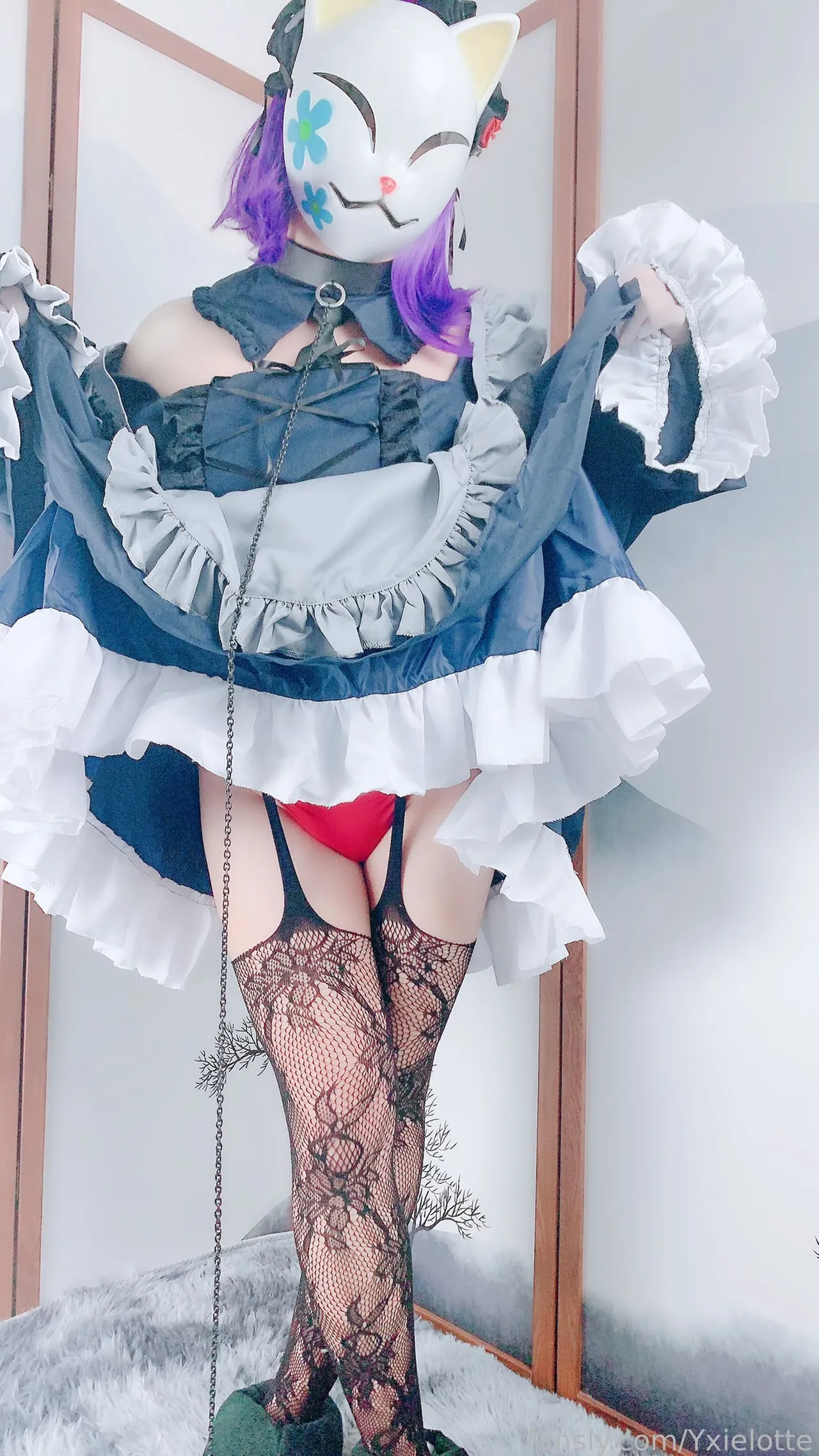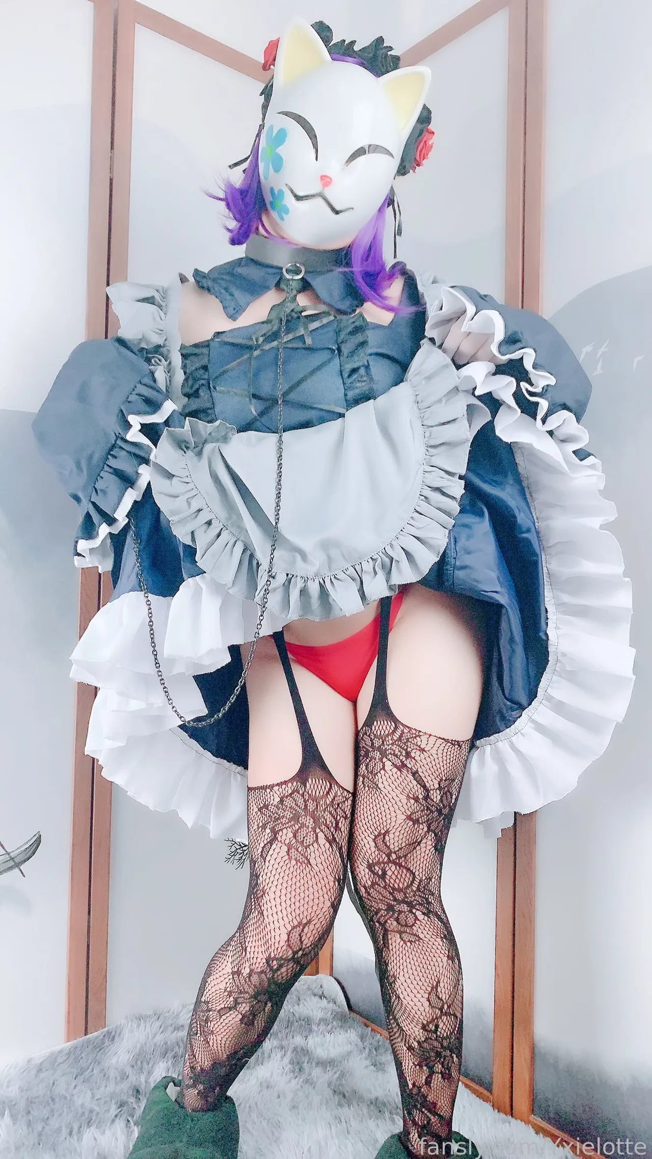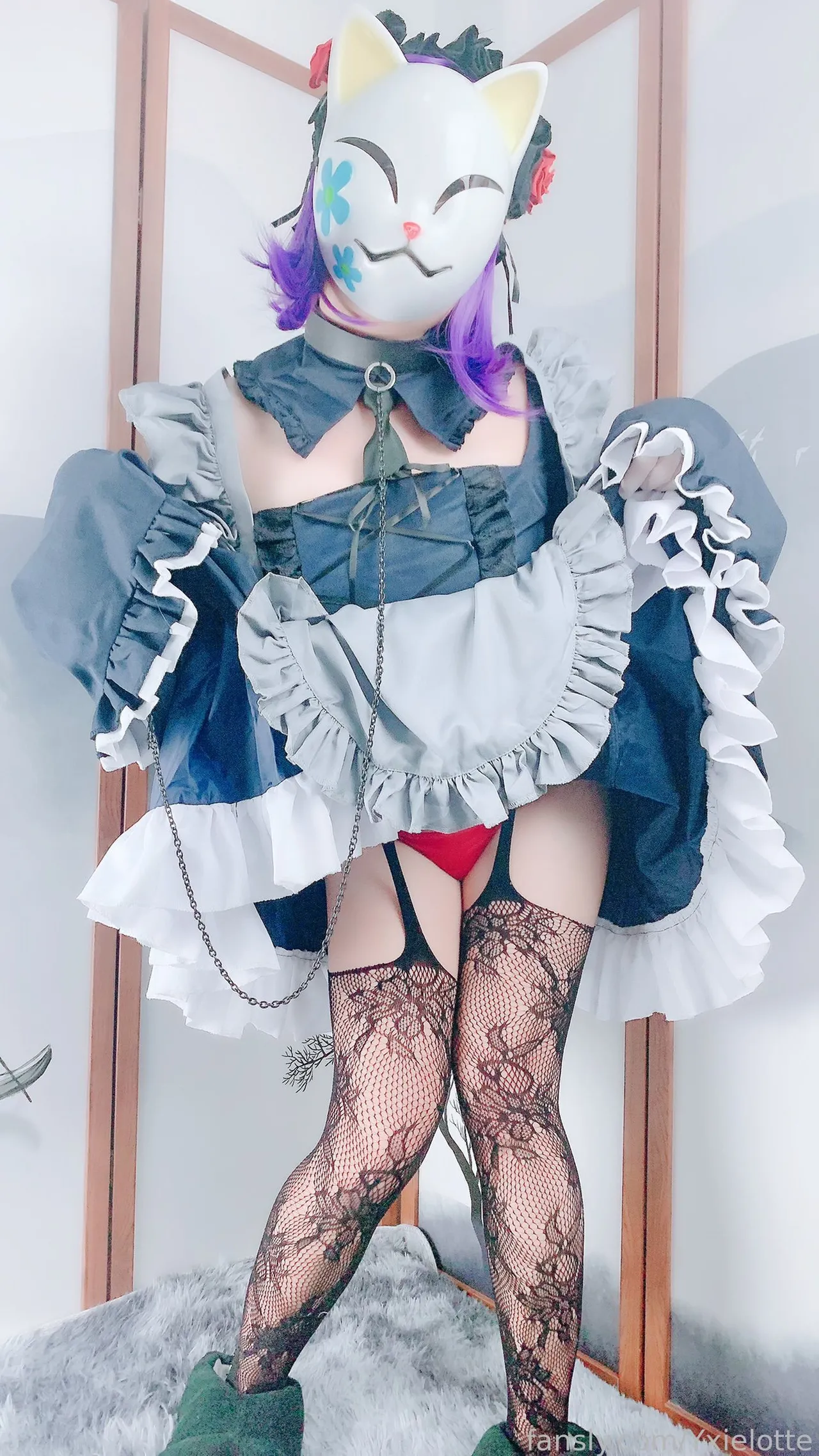 Tags: hentai cosplay, Maid, masked face, Shizuku Kuroe, sono bisque doll wa koi o suru | my dress-up darling, stockings