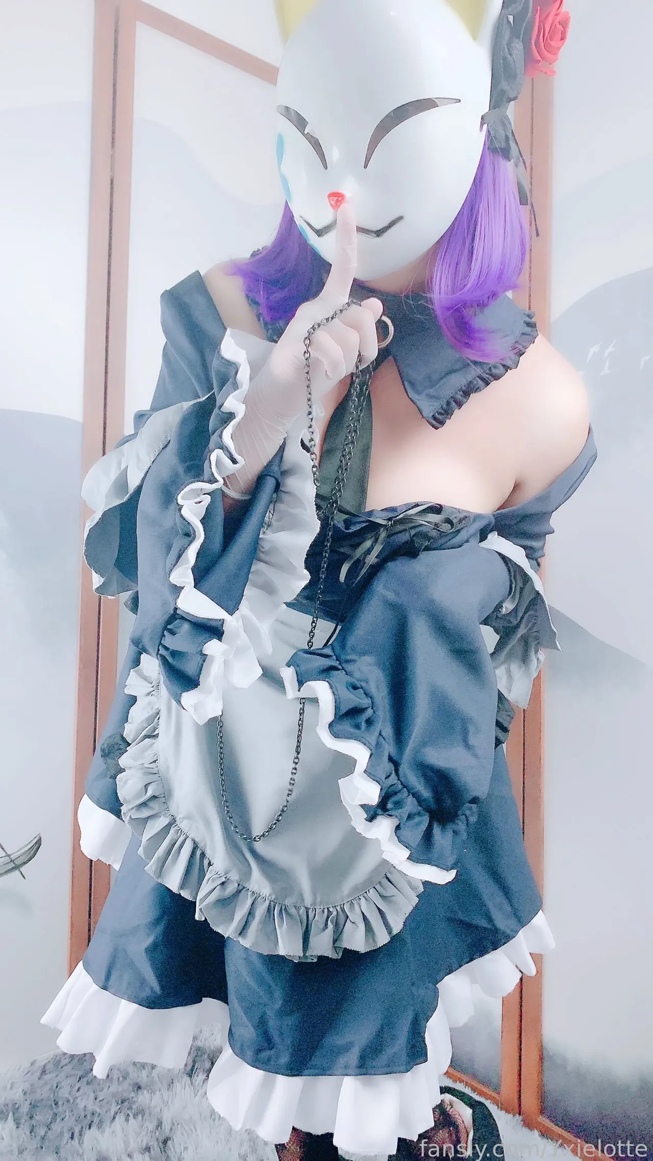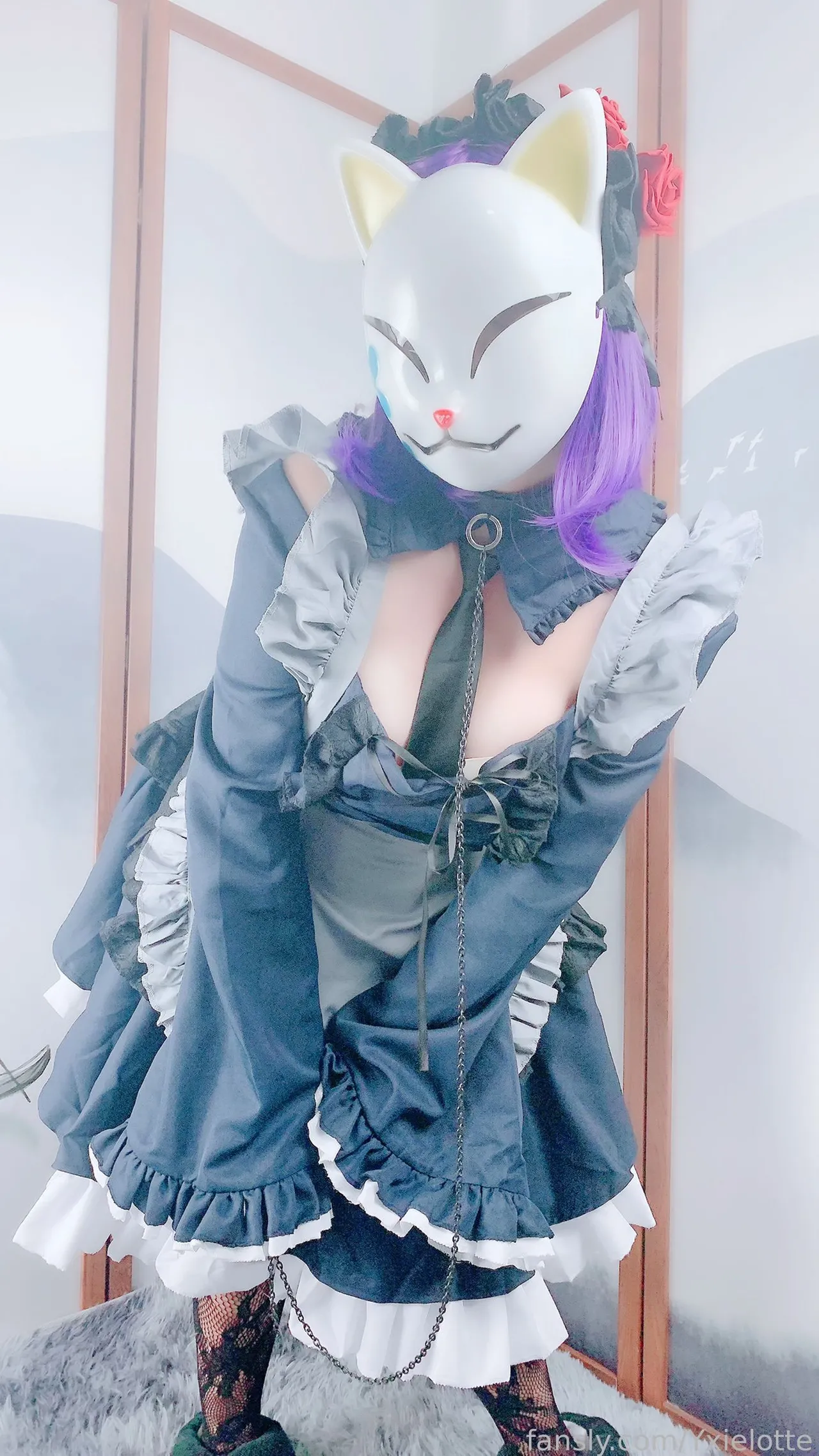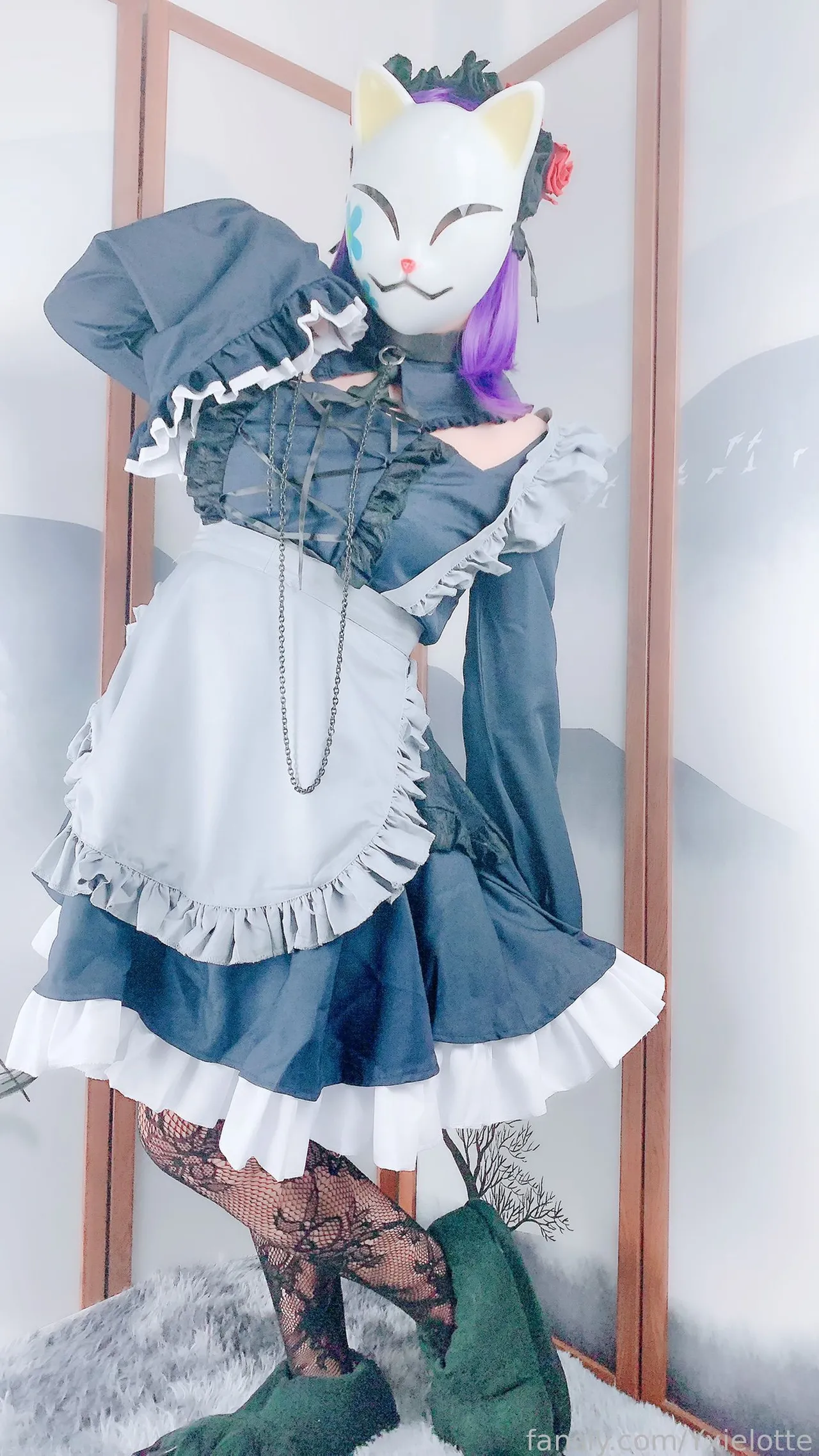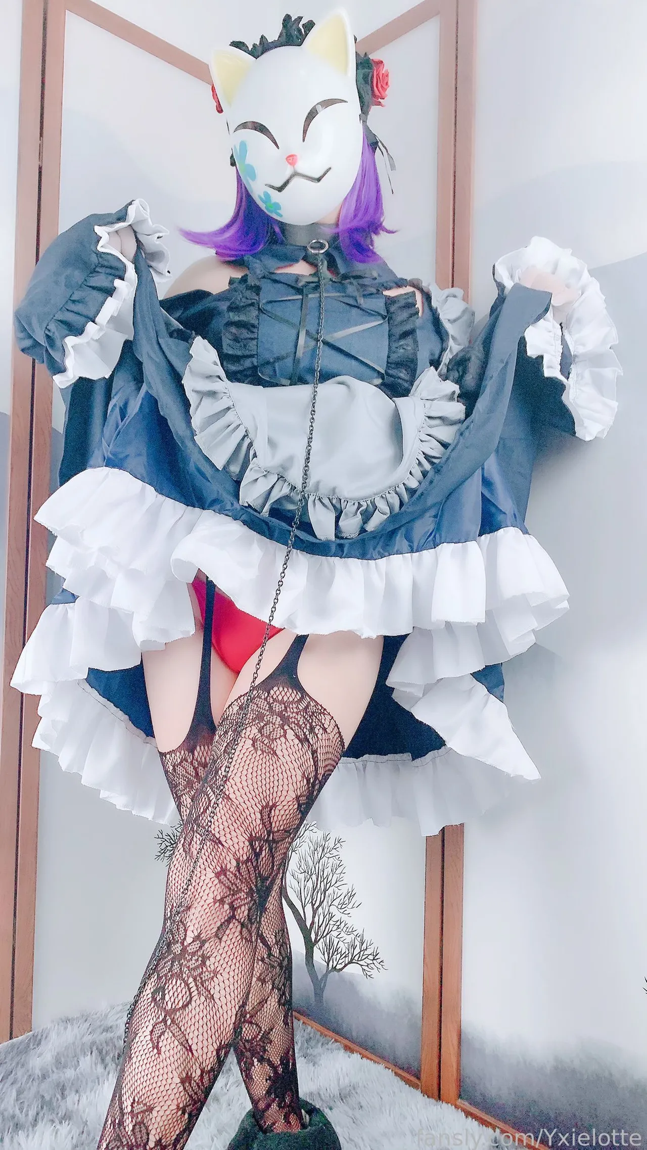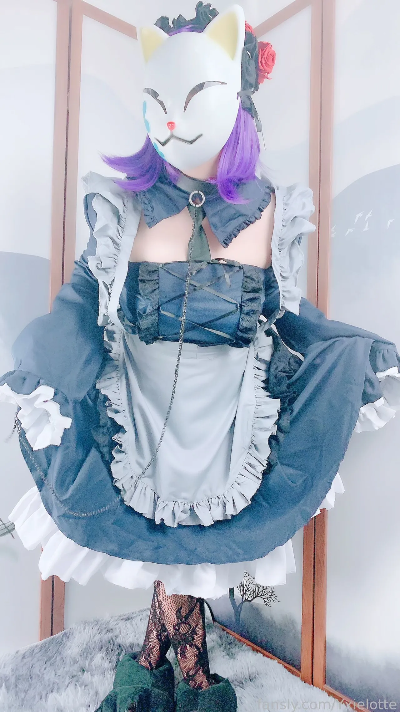 Tags: hentai cosplay, Maid, masked face, Shizuku Kuroe, sono bisque doll wa koi o suru | my dress-up darling, stockings